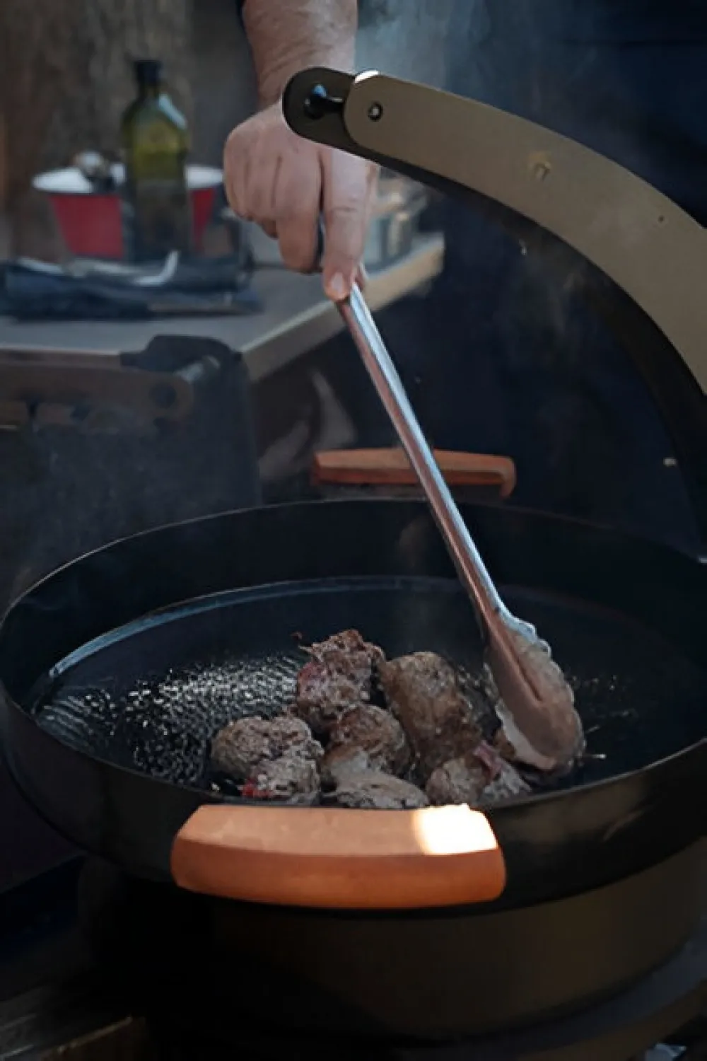 Características principales.Patas desmontables // superficie enlozada// Asas de madera.